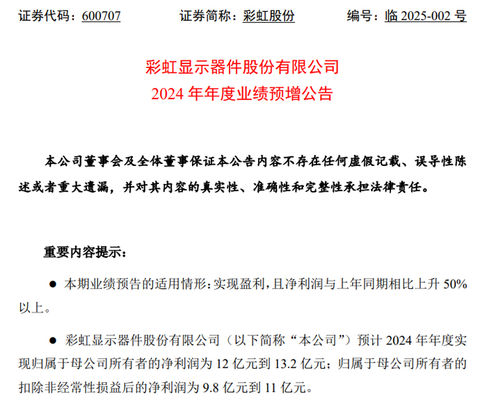 彩虹股份:預(yù)計(jì)2024年凈利潤12到13.2億元,同增超81%!