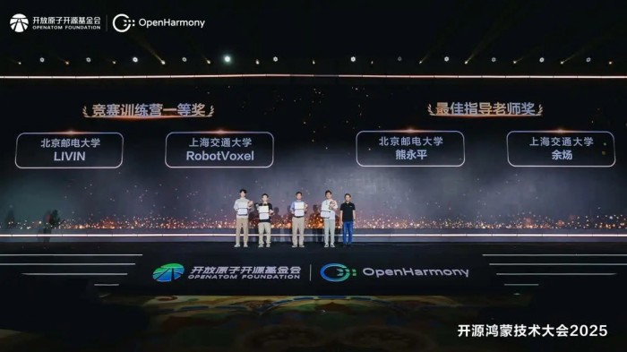 同時(shí),本屆訓(xùn)練營還特別頒發(fā)了最佳指導(dǎo)老師獎(jiǎng)。北京郵電大學(xué)熊永平老師與上海交通大學(xué)余煬老師憑借對學(xué)生團(tuán)隊(duì)的悉心指導(dǎo),榮獲這一殊榮。兩位老師不僅在項(xiàng)目研發(fā)過程中提供了專業(yè)支持,更以學(xué)術(shù)積累和實(shí)踐經(jīng)驗(yàn)幫助學(xué)生突破難題,成為推動(dòng)開源鴻蒙生態(tài)人才培養(yǎng)的重要力量。