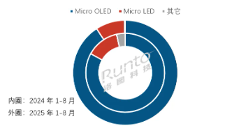 在顯示技術(shù)方面,Micro OLED憑借更高的像素密度等優(yōu)勢,成為AR眼鏡絕對的主要方案。洛圖科技(RUNTO)線上數(shù)據(jù)顯示,2025年1-8月,Micro OLED在AR線上市場的占比高達90.8%,較2024年同期增長了7.8個百分點。