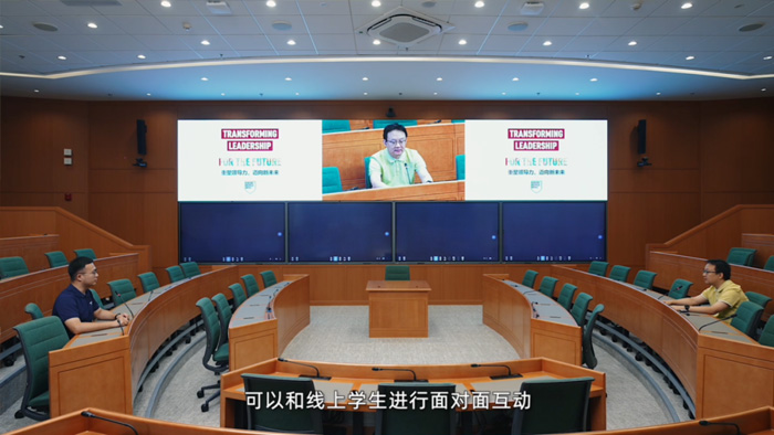 當課堂中任意位置學生發(fā)言時,攝像頭會自動追蹤到發(fā)言學生,電子白板替代傳統(tǒng)板書,讓遠程學員也可清晰參與案例研討,真正實現(xiàn)混合式教學場景的無縫銜接。