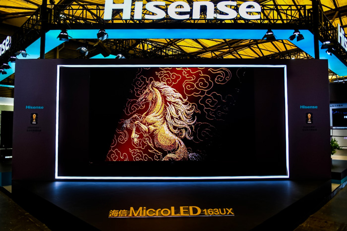 在現(xiàn)場亮相的163英寸 Micro LED 巨幕極具亮點(diǎn),它搭載2488萬顆Micro LED自發(fā)光芯片,每一顆都能獨(dú)立發(fā)光,像素控光精度堪比顯微鏡級別,實(shí)現(xiàn)了近乎無限的對比度與色彩還原能力,即使在強(qiáng)光環(huán)境下仍能保持畫面細(xì)節(jié)清晰可見。該產(chǎn)品有著32mm超薄機(jī)身,支持 “零貼墻” 安裝,在音效方面,聯(lián)手法國帝瓦雷打造的5.1.4聲道音響系統(tǒng),24個發(fā)聲聲道,帶來了極致沉浸的音畫體驗(yàn),成為豪宅客廳、商業(yè)展廳等場景的絕佳顯示方案。