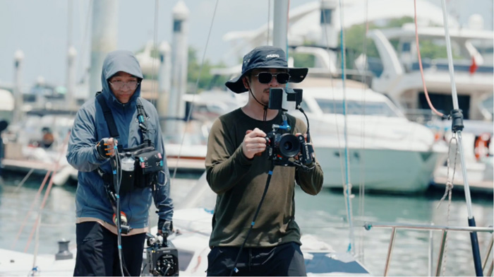 海上拍攝有著暴烈的陽(yáng)光與水面反光,對(duì)拍攝是不小的挑戰(zhàn)。鐘銳提到:“擴(kuò)展系統(tǒng)在拍日景、外景的時(shí)候會(huì)非常的方便,它有曝光輔助的功能,耀眼的陽(yáng)光下可以讓你非常輕松地獲得準(zhǔn)確的曝光!蓖瑫r(shí),CineAltaV 2 分體系統(tǒng)Mini的9款ND濾鏡可以做到快速插拔切換,大幅提升了拍攝效率!胺椒ㄔ胶(jiǎn)單,穩(wěn)定性就越高,”鐘銳強(qiáng)調(diào)道。