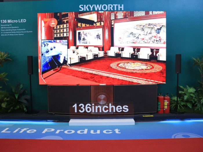 面向商用領域,創(chuàng)維首臺AI智能體多場景LED超級電視——“創(chuàng)維影音王座”136吋Micro LED也重磅亮相,能夠覆蓋會議、教育、文旅等多元場景。
