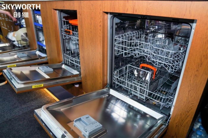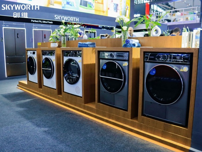 除了作為智慧家庭中樞的電視產品,創(chuàng)維此次展出的全品類家電同樣精彩紛呈,共同構筑了完整的智慧生活解決方案。創(chuàng)維冰箱冷柜、洗衣機、干衣機與洗碗機等明星產品齊聚展臺。
