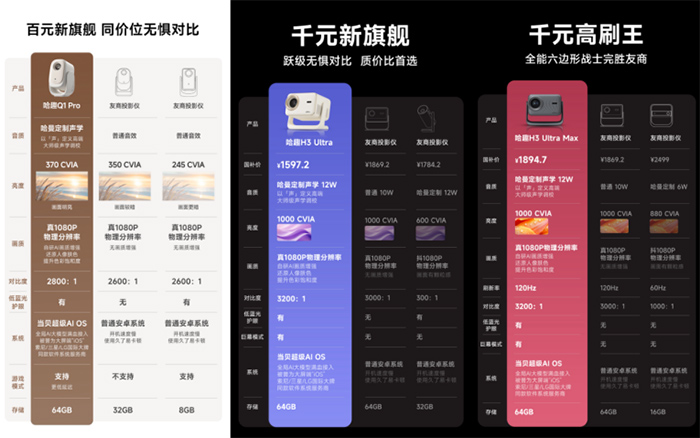 作為杭州當(dāng)影科技旗下專注投影全鏈條服務(wù)的國(guó)潮品牌,哈趣投影自誕生起便聚焦當(dāng)代年輕人的家用臥室投影需求,秉持“有趣、好玩、高品質(zhì)”的產(chǎn)品理念,在1LCD 投影領(lǐng)域快速崛起。從產(chǎn)品設(shè)計(jì)、研發(fā)到制造,哈趣始終以用戶體驗(yàn)為核心,憑借在畫質(zhì)優(yōu)化上的精準(zhǔn)調(diào)校、便攜機(jī)身的場(chǎng)景適配,以及高性價(jià)比的市場(chǎng)定位,精準(zhǔn)擊中年輕人對(duì)臥室影音設(shè)備的核心訴求,成為年輕消費(fèi)群體中極具口碑的1 LCD 投影品牌。