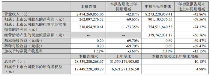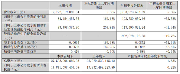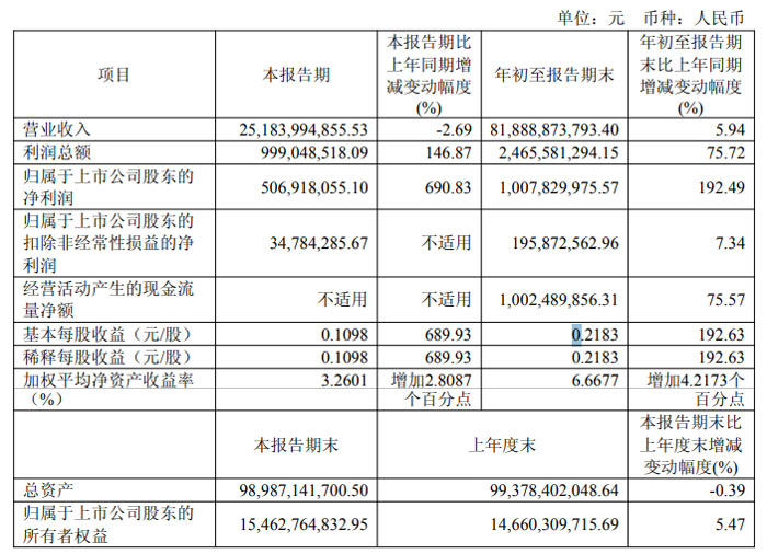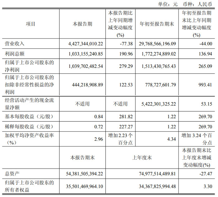 從年初至報告期末(1-9 月),公司累計營業(yè)收入 297.69 億元,同比下降 44.00%;累計歸母凈利潤 15.13 億元,同比大幅增長 265.09%,扣除非經(jīng)常性損益后的凈利潤 7.79 億元,同比增幅更高達 993.41%,顯示公司主營業(yè)務盈利能力顯著提升。