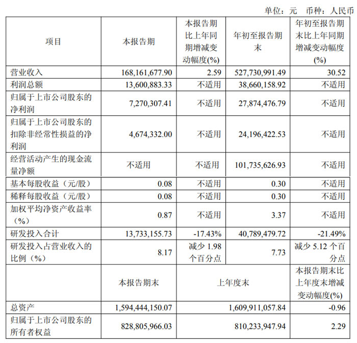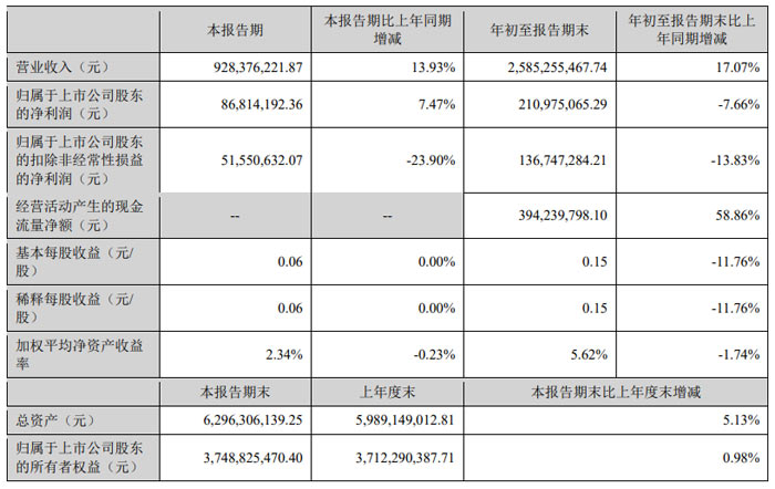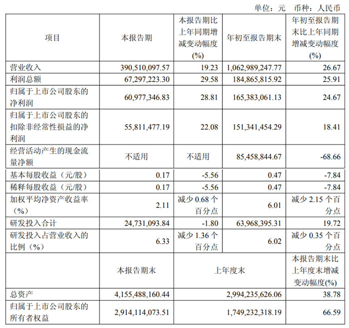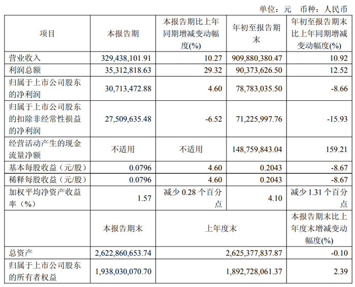 年初至報告期末(1-9 月):累計營業(yè)收入達 25.85 億元,同比增幅 17.07%;累計歸母凈利潤 2.11 億元,同比下降 7.66%;扣非后凈利潤 1.37 億元,同比下降 13.83%。