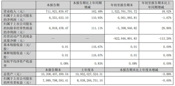 據(jù)報(bào)告披露,2025 年第三季度,航天彩虹單季度實(shí)現(xiàn)營業(yè)收入 7.12 億元,較上年同期大幅增長 162.48%,營收規(guī)模實(shí)現(xiàn)跨越式提升;歸屬于上市公司股東的凈利潤 655.16 萬元,同比增長 110.95%,盈利能力顯著增強(qiáng);扣除非經(jīng)常性損益后的凈利潤 681.85 萬元,同比增幅達(dá) 111.11%,主營業(yè)務(wù)盈利水平同步提升,反映公司核心業(yè)務(wù)經(jīng)營質(zhì)量持續(xù)優(yōu)化。