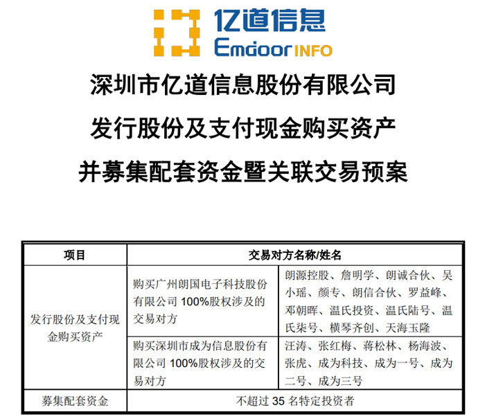 近日,深圳市億道信息股份有限公司(證券代碼:001314,證券簡稱:億道信息)正式發(fā)布《發(fā)行股份及支付現金購買資產并募集配套資金暨關聯交易預案》,擬通過發(fā)行股份結合現金支付的方式,收購廣州朗國電子科技股份有限公司(下稱 “朗國科技”)與深圳市成為信息股份有限公司(下稱 “成為信息”)100% 股權,并向不超過 35 名特定投資者募集配套資金,旨在進一步完善公司在 AIoT(人工智能物聯網)與 RFID(射頻識別)領域的產業(yè)布局,強化核心競爭力。