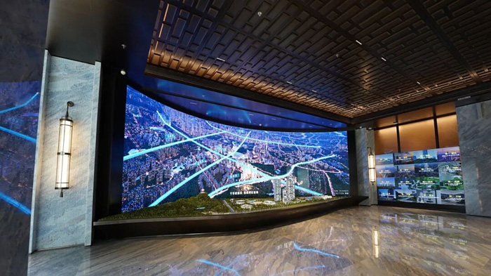 每一段曲率都源自工程師反復(fù)計(jì)算與測(cè)試,采用高精度模組曲面拼接,確保屏幕無縫延展,消除視覺斷層;環(huán)抱式視角,讓光影與建筑自然融合,參觀者仿佛置身全局之中,身臨其境