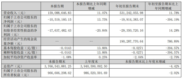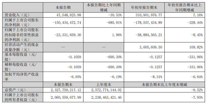 每股收益方面,本報告期基本每股收益為 - 0.0242 元 / 股,年初至報告期末為 - 0.1328 元 / 股,同比均出現(xiàn)大幅下滑,降幅分別為 510.17% 和 850.28%。