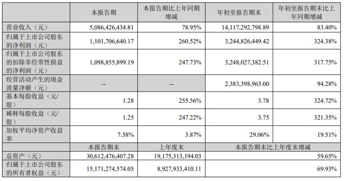 2025 年 1-9 月,公司整體經(jīng)營表現(xiàn)更為強勁:累計營業(yè)收入達 141.17 億元,同比增長 83.40%,業(yè)務規(guī)模持續(xù)擴張;累計歸母凈利潤 32.45 億元,同比增幅高達 324.38%,盈利能力顯著提升;扣非后歸母凈利潤 32.48 億元,同比增長 317.75%,核心業(yè)務盈利穩(wěn)定性凸顯;基本每股收益 3.78 元 / 股,同比增長 324.72%,股東回報同步大幅增加。
