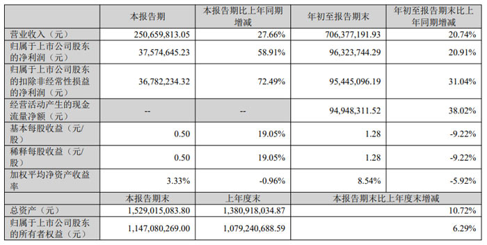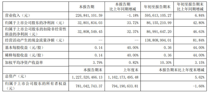 年初至報告期末,公司累計實現(xiàn)營業(yè)收入 7.06 億元,同比增長 20.74%;累計歸母凈利潤 9632.37 萬元,同比增長 20.91%;累計扣非凈利潤 9544.51 萬元,同比增長 31.04%,進一步驗證了公司業(yè)務增長的持續(xù)性。