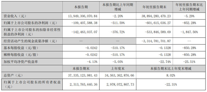本報告期內(nèi),公司歸屬于上市公司股東的凈利潤為 - 1.09 億元,同比下降 511.59%;扣除非經(jīng)常性損益后的凈利潤為 - 1.42 億元,同比降幅達 376.72%。從累計數(shù)據(jù)看,1-9 月歸屬于上市公司股東的凈利潤虧損擴大至 6.02 億元,同比降幅 852.28%;扣非后凈利潤虧損 5.34 億元,同比降幅高達 1847.56%,反映出公司主營業(yè)務短期面臨較大盈利挑戰(zhàn)。
