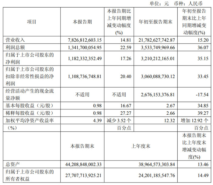 從年初至報告期末的累計數(shù)據(jù)來看,公司業(yè)績增長勢頭更為強勁:累計營業(yè)收入達 217.83 億元,同比增長 15.20%;累計歸屬于上市公司股東的凈利潤 32.10 億元,同比大幅增長 35.15%;累計扣非凈利潤 30.60 億元,同比增長 33.45%,進一步驗證了公司主營業(yè)務的持續(xù)盈利能力。