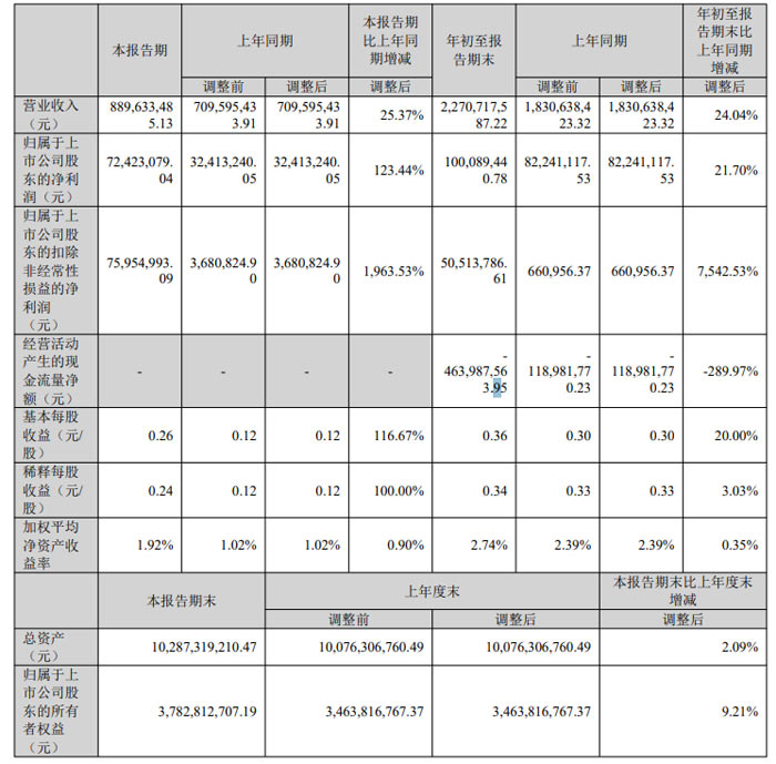 本報告期(單三季度)公司實現(xiàn)營業(yè)收入 8.90 億元,較上年同期增長 25.37%;年初至報告期末累計營收達 22.71 億元,同比增長 24.04%,增長動力主要來自訂單量的穩(wěn)步增加。