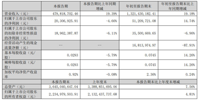 盈利水平同步提升:1-9月份,累計歸母凈利潤達 5120.97 萬元,同比增長 14.74%;扣除非經(jīng)常性損益后,凈利潤為 1896.24 萬元,盈利能力堅實;久抗墒找 0.0745 元,較上年同期的 0.0652 元增長 14.26%,股東回報能力進一步增強。第三季度,實現(xiàn)歸母凈利2030.69萬元,同降4.66%。
