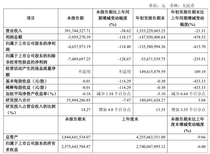 前三季度業(yè)績(jī)(2025 年 1-9 月)​:營(yíng)業(yè)收入為 13.53 億元,較上年同期的 17.20 億元下降 21.31%;利潤(rùn)總額為 - 1.48 億元,較上年同期的 3908.03 萬元下降 478.53%;​歸屬于上市公司股東的凈利潤(rùn)為 - 1.36 億元,較上年同期的 4294.66 萬元下降 415.70%;​歸屬于上市公司股東的扣除非經(jīng)常性損益的凈利潤(rùn)為 - 5367.15 萬元,較上年同期的 3960.68 萬元下降 235.51%;​基本每股收益 - 0.30 元,較上年同期的 0.09 元下降 433.33%;​經(jīng)營(yíng)活動(dòng)產(chǎn)生的現(xiàn)金流量?jī)纛~為 1.50 億元,較上年同期的 7152.32 萬元增長(zhǎng) 109.19%。​