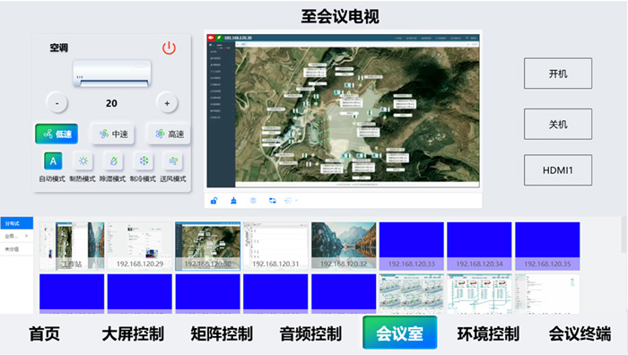 為減少值守人員在多設(shè)備間切換的操作成本,在協(xié)同過程中,值守人員不再受設(shè)備形態(tài)限制,并可通過可視化菜單能在多屏與多設(shè)備間順暢切換,關(guān)鍵畫面可直接推送至大屏或相鄰席位,必要時還能快速接管控制權(quán),領(lǐng)導(dǎo)席位關(guān)注的視圖也能與指揮席保持信息同頻,大幅提升決策效率。中控系統(tǒng)進一步整合了燈光、空調(diào)、窗簾及視頻會議設(shè)備,場景切換無需在多個系統(tǒng)間來回操作,實現(xiàn)顯控與環(huán)境設(shè)備的同節(jié)奏聯(lián)動。