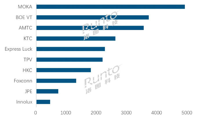 第三季度出貨量超過300萬臺(tái)的電視代工廠有:三家專業(yè)代工廠MOKA(茂佳)、BOE VT(視訊)和AMTC(兆馳),以及品牌自有工廠長虹OEM。