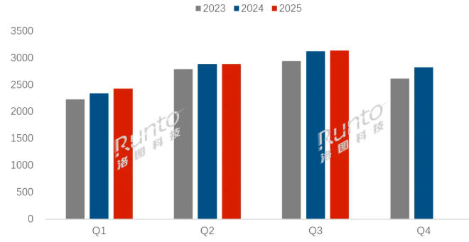 前三個(gè)季度累計(jì)來看,全球電視代工市場的出貨總量為8450.7萬臺(tái),比2024年同期小幅增長1.1%。進(jìn)入第三季度,8月、9月連續(xù)兩個(gè)月的同比下降,表明市場開始顯著承壓。