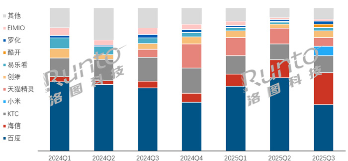 2024-2025Q3 中國移動智慧屏線上市場重點(diǎn)品牌銷量份額