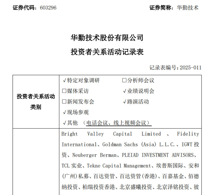 2025 年 10 月,華勤技術(shù)股份有限公司(證券代碼:603296)以路演活動(dòng)、特定對象調(diào)研、業(yè)績說明會(huì)等多種形式,密集接待了 Bright Valley Capital Limited、高盛、淡馬錫控股、易方達(dá)基金等全球超百家知名投資機(jī)構(gòu)調(diào)研。調(diào)研期間,公司披露 2025 年前三季度業(yè)績持續(xù)高速增長,四大核心業(yè)務(wù)板塊營收增速均超 70%,各業(yè)務(wù)線齊頭并進(jìn),展現(xiàn)出強(qiáng)勁的發(fā)展韌性與增長潛力。