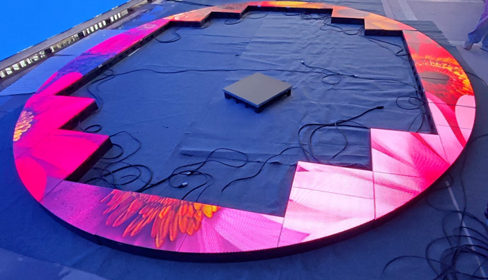 AR系列地磚屏憑借超高承重性與穩(wěn)定顯示效果,成為舞臺(tái)視效的重要亮點(diǎn)。地磚屏與舞臺(tái)表演無縫融合,可容納多人站立其中,屏幕隨音樂節(jié)奏呈現(xiàn)豐富動(dòng)態(tài)效果,打造虛實(shí)交織的視覺幻境,與舞臺(tái)背景屏形成一體化視覺空間。