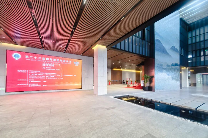 而在會(huì)展中心連廊區(qū)域,洲明天幕屏與首層大屏將潮州的文化符號(hào)、年會(huì)主題等影像串聯(lián)在一起,讓來自世界各地的潮人代表走入場(chǎng)館的那一刻起,就感受到“回家”的溫暖氛圍。