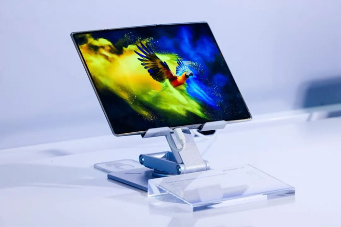 天馬9.94 英寸G形態(tài)三折顯示屏也于本次博覽會(huì)驚艷亮相。該產(chǎn)品采用R2.5mm雙內(nèi)折結(jié)構(gòu),通過(guò)仿真設(shè)計(jì)、堆疊膜材優(yōu)化,完成雙內(nèi)折膜層耦合等技術(shù)開發(fā),優(yōu)化了產(chǎn)品整體的平整度、彎折次數(shù),并搭載了SLOD(Stacked Layer OLED Device)顯示技術(shù),在實(shí)現(xiàn)輕薄形態(tài)的同時(shí),相比行業(yè)水平功耗降低了30%,壽命達(dá)到Single的4倍以上。這不僅是一塊能折的屏,更是一塊“折得好、展得平”的智慧屏。