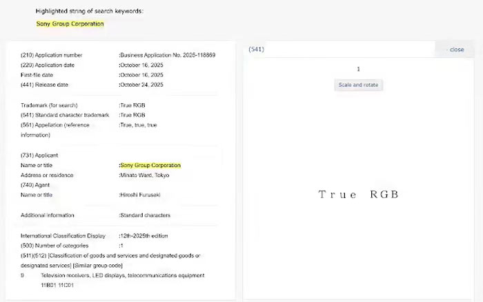 據(jù)總部位于德國(guó)的權(quán)威科技媒體Notebook Check近日披露,索尼計(jì)劃于2026年年初正式發(fā)布Bravia 7 II與Bravia 9 II兩大系列全新Mini LED電視(編者注:大概率會(huì)亮相CES 2026)。此次新品發(fā)布的核心技術(shù)支撐——名為“True RGB”的顯示技術(shù)專利,已在加拿大與日本完成商標(biāo)注冊(cè),標(biāo)志著索尼在高端電視顯示領(lǐng)域的技術(shù)布局取得關(guān)鍵進(jìn)展。
