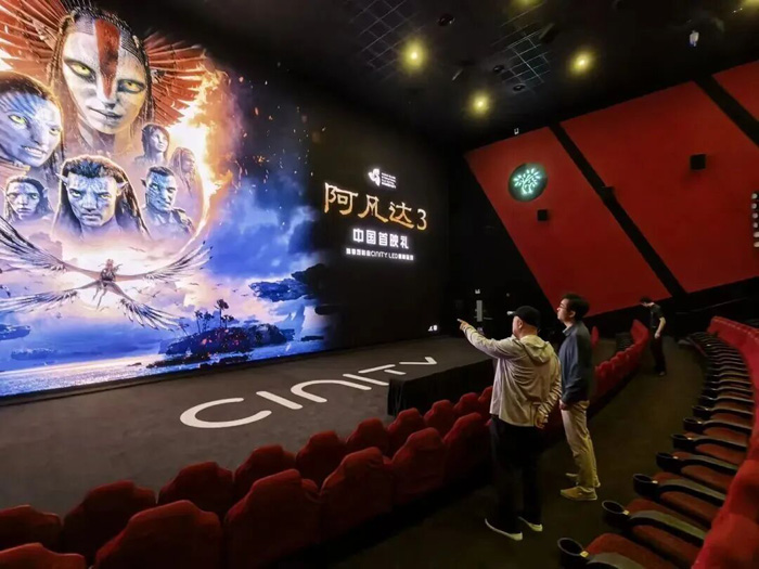 12月17日下午18點(diǎn),位于成都簡(jiǎn)陽東來印象文化體育中心的太平洋影城CINITY LED影廳開始超前點(diǎn)映《阿凡達(dá)3》,這比全國12月19日零點(diǎn)的正式公映時(shí)間足足提前了30小時(shí)。這塊長(zhǎng)度23米、寬度12.1米的全國最大全透聲CINITY LED杜比全景聲銀幕,以傳統(tǒng)影廳10倍的峰值亮度、5倍的畫面流暢度,實(shí)現(xiàn)對(duì)標(biāo)激光IMAX的頂級(jí)視覺表現(xiàn),徹底打破傳統(tǒng)放映邊界,將觀眾帶入“身臨其境”的沉浸觀影新紀(jì)元。這一“優(yōu)先觀影”的福利讓粉絲們搶先解鎖了潘多拉星球的奇幻旅程。