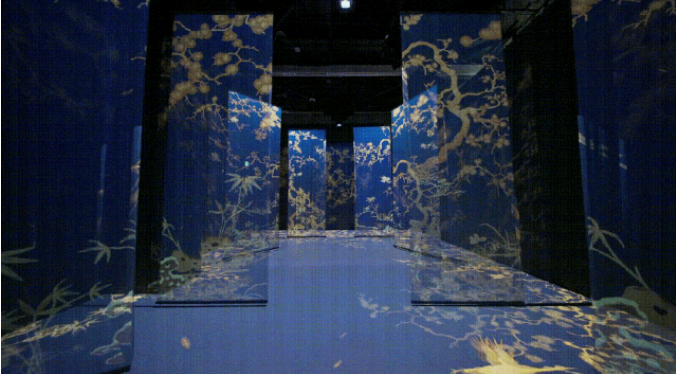 創(chuàng)造無界沉浸空間:通過投影融合技術(shù),將多面墻體、地面連為整體畫布,使紋樣掙脫物理框架,營造出包裹視聽的沉浸場域。