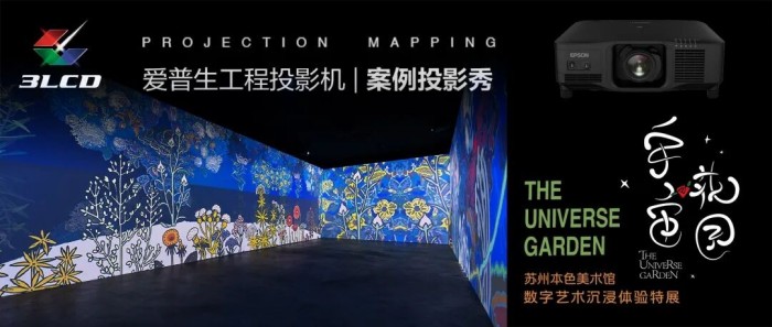 在蘇州本色美術(shù)館的“宇宙花園”數(shù)字藝術(shù)特展中,12臺愛普生工程投影機憑借超高亮度與3LCD技術(shù),成功突破環(huán)境光的挑戰(zhàn)。即便在強光環(huán)境下,仍能保持畫面的色彩鮮明與層次細膩,精準(zhǔn)還原藝術(shù)家筆觸的每一絲微妙紋理。