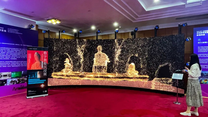 “尋境敦煌”數(shù)字敦煌沉浸展由騰訊互動娛樂事業(yè)群內(nèi)容生態(tài)部創(chuàng)新結(jié)合“LED虛擬拍攝與動捕技術(shù)”,奧拓電子提供RM系列LED產(chǎn)品而打造,讓用戶無需佩戴VR設(shè)備,裸眼即可沉浸式“走進”敦煌洞窟,并可使用真實道具完成與數(shù)字場景的互動,突破虛擬與現(xiàn)實的邊界。