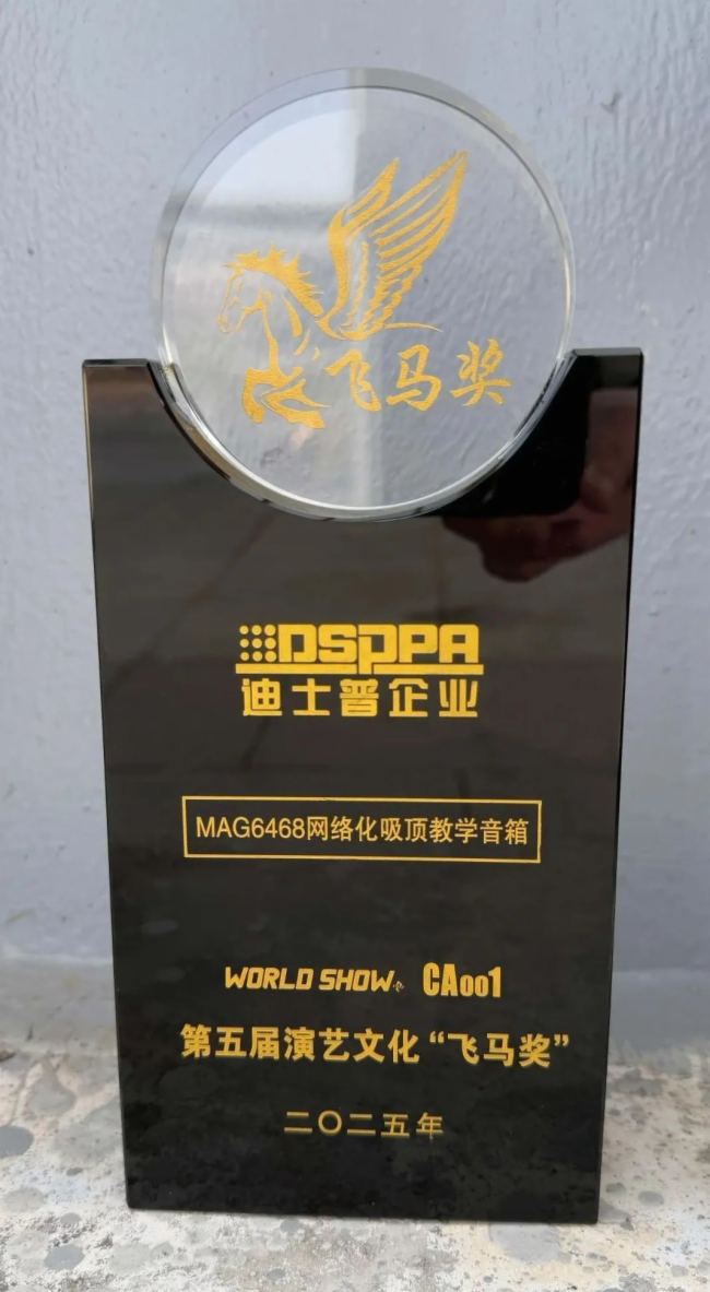 在展會同期舉辦的第五屆演藝文化飛馬獎頒獎典禮暨海外音視頻行業(yè)交流會 中,迪士普網(wǎng)絡化吸頂教學音箱榮獲第五屆演藝文化“飛馬獎” !