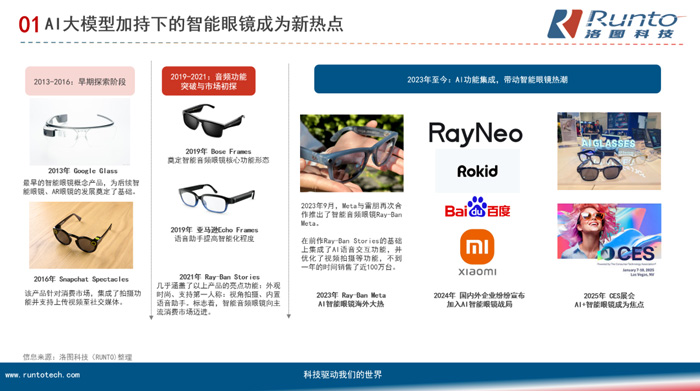 洛圖科技(RUNTO)暫將智能眼鏡市場(chǎng)的發(fā)展整理為三個(gè)階段:
