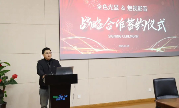 簽約儀式現(xiàn)場(chǎng),合肥全色光顯科技有限公司董事長(zhǎng)許立新首先進(jìn)行致辭。許董事長(zhǎng)回顧了全色光顯在激光顯示領(lǐng)域的發(fā)展歷程,從技術(shù)研發(fā)的攻堅(jiān)克難,到產(chǎn)品應(yīng)用的廣泛拓展,每一步都凝聚著全色光顯人的心血與智慧。他強(qiáng)調(diào),此次與魅視影音的合作,是全色光顯發(fā)展道路上的重要里程碑,公司將充分發(fā)揮在激光顯示設(shè)備技術(shù)、硬件和軟件開發(fā)等方面的優(yōu)勢(shì),與魅視影音共同探索更多創(chuàng)新應(yīng)用場(chǎng)景,為行業(yè)發(fā)展注入新動(dòng)力。