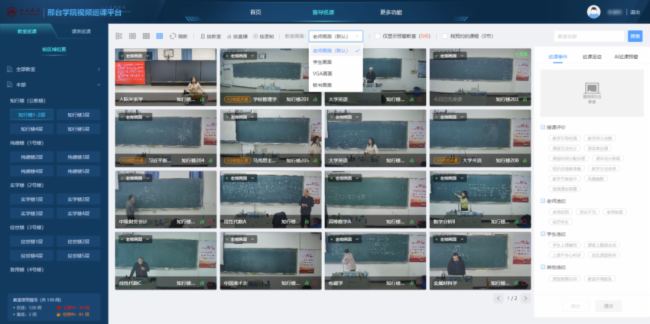 除了深入一線推門聽課,銳取視頻巡課平臺創(chuàng)新督導(dǎo)方式 ,接入130間教室數(shù)據(jù)信息,以線上督導(dǎo),多間教室齊聚一屏,并可根據(jù)巡查重點快速切換畫面與畫面布局,實現(xiàn)130間教室大規(guī)?焖佟霸蒲病,為學(xué)校提高督導(dǎo)實效 。