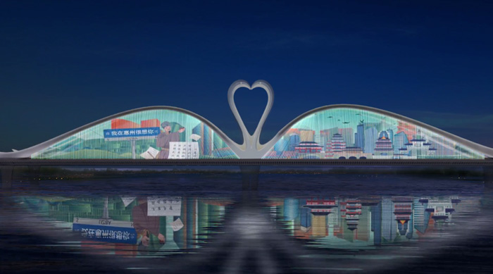 橋體燈光設(shè)計(jì)以“天鵝之姿”為核心,應(yīng)用洲明康利量身定制的景觀照明解決方案,洲明康利作為工程施工單位,157000點(diǎn)光源、5000盞洗墻燈、300套投光燈共同構(gòu)建光影盛宴。橋體光色在近、中、遠(yuǎn)不同視距下呈現(xiàn)層次分明的視覺效果,透過光色韻律變化演繹惠州城市魅力。