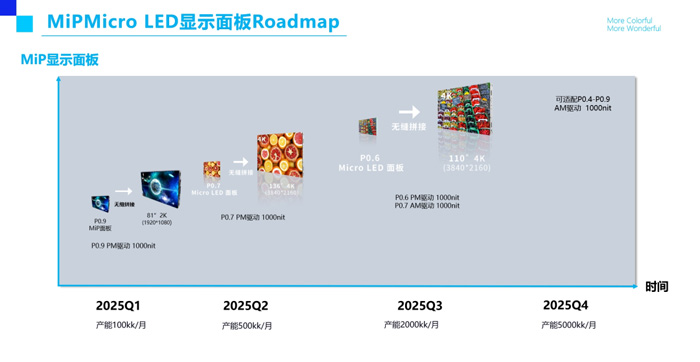 2024年MiP面板公開版本已實現(xiàn)量產,預計2025年Q2將實現(xiàn)500kk/月的產能目標