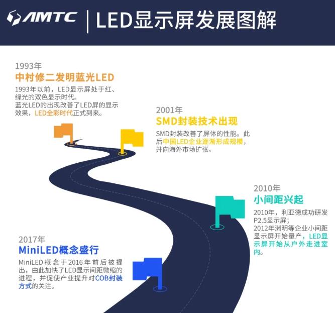 1993年,中村修二發(fā)明藍(lán)光LED,帶動(dòng)LED顯示屏進(jìn)入全彩時(shí)代。但LED顯示屏真正得到大規(guī)模應(yīng)用,則是發(fā)生在2001年SMD封裝技術(shù)誕生之后。