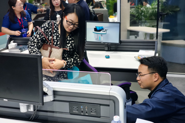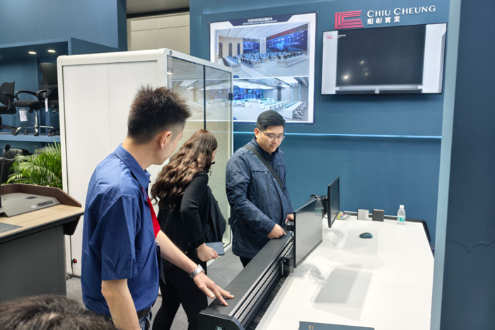 照彰新品‘高教演講臺’也吸引了客戶紛紛駐足體驗。這款高教演講臺是照彰專為高等教育環(huán)境設(shè)計,是演講者在進行課堂教學、學術(shù)報告、專題講座等匯報時所使用的專業(yè)講臺。