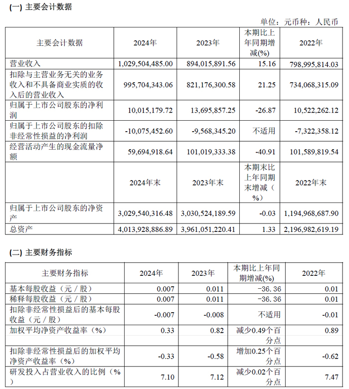 2024年度,汕頭萬順新材集團(tuán)股份有限公司 實現(xiàn)總營業(yè)收入65.79億元,同比增長22.52%,但由于鋁加工業(yè)務(wù)行業(yè)加工費水平下降、國內(nèi)外鋁價波動等影響毛利水平,功能性薄膜業(yè)務(wù)產(chǎn)銷規(guī)模相對較小,單位固定費用較高,加上公司財務(wù)費用增加、投資收益減少、計提資產(chǎn)減值、沖回部分遞延所得稅資產(chǎn)等因素影響,公司經(jīng)營利潤出現(xiàn)虧損,歸屬于上市公司股東的凈利潤-1.92億元,同比下降285.36%。
