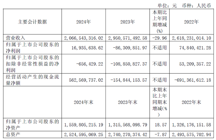 4月28日,廣州鹿山新材料股份有限公司發(fā)布2024年年度報告。報告期內(nèi),公司實現(xiàn)營業(yè)收入20.67 億元,同降29.96%;歸母凈利潤為1,693.56 萬元,同比增加1.03億元,經(jīng)營性現(xiàn)金流凈額達到56,256.97 萬元,同比增加71,741.39 萬元,盈利能力及經(jīng)營性現(xiàn)金流同比得到顯著提升。