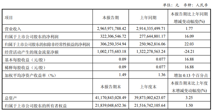 報(bào)告期內(nèi),營業(yè)總成本26.64億元,實(shí)現(xiàn)營業(yè)利潤3.23億元,利潤總額3.23億元,凈利潤3.19億元。銷售費(fèi)用、管理費(fèi)用、研發(fā)費(fèi)用、財(cái)務(wù)費(fèi)用分別為409.78萬元、1.17億元、9393.48萬元、6578.96萬元。