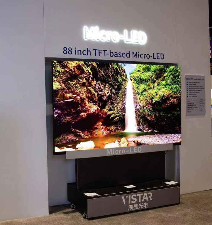 針對家庭影院市場,維信諾參股公司辰顯光電帶來了全球首款88英寸P0.5 TFT基Micro-LED拼接屏,像素更小,細節(jié)呈現(xiàn)更精準;具備2000nits亮度、26000:1高對比度、100% DCI-P3100% 影院級色域,高對比+低反光,帶來更清晰的HDR體驗;物理拼縫小于20μm,視覺效果達到“0”拼縫;針對新興透明顯示應用,辰顯光電帶來全球首款P0.5 TFT基Micro-LED透明屏產(chǎn)品,通過微米級LED芯片及高開口率TFT透明基板,單屏透過率72%,亮度達3000nits,支持無限拼接,廣泛適用于博物館、地鐵車窗、智慧城市廣告等場景。