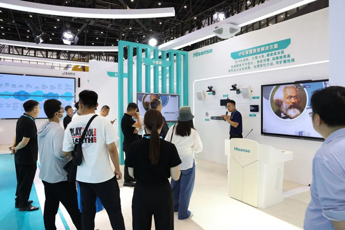 展會(huì)現(xiàn)場(chǎng),海信觸控產(chǎn)品新品MR5F-PRO系列亮相,打造AR教室、校園樓棟信息發(fā)布、AI督導(dǎo)巡課、校園信息智控發(fā)布等場(chǎng)景,展示新時(shí)代智慧校園圖景。
