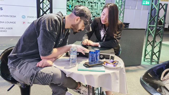 在租賃戶外產(chǎn)品體驗(yàn)區(qū),兩款租賃產(chǎn)品E-Swan & Pilot Pro 呈吊裝安裝方式,因其重量輕、安裝簡(jiǎn)便、箱體弧度可調(diào)節(jié)等特點(diǎn),吸引了眾多客戶駐足停留。在工程師的協(xié)助下,客戶可以直接上手感受產(chǎn)品的特點(diǎn),拉近與客戶距離的同時(shí)也能增強(qiáng)客戶的體驗(yàn)感。