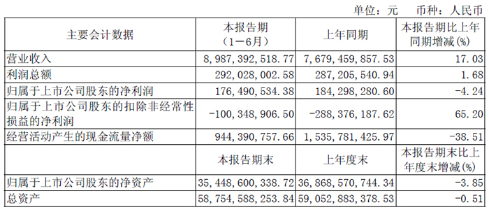 2025 年上半年,各地區(qū)各部門加緊實施更加積極有為的宏觀政策,國民經(jīng)濟頂壓前行、穩(wěn)定運行,上半年GDP 同比增長5.3%,增速比去年同期和全年均提升0.3 個百分點。在上半年穩(wěn)中有進的國內(nèi)經(jīng)濟環(huán)境下,公司實現(xiàn)營業(yè)收入89.87 億元,同比增長17.03%,實現(xiàn)歸屬于上市公司股東的凈利潤1.76 億元,同比下降4.24%。